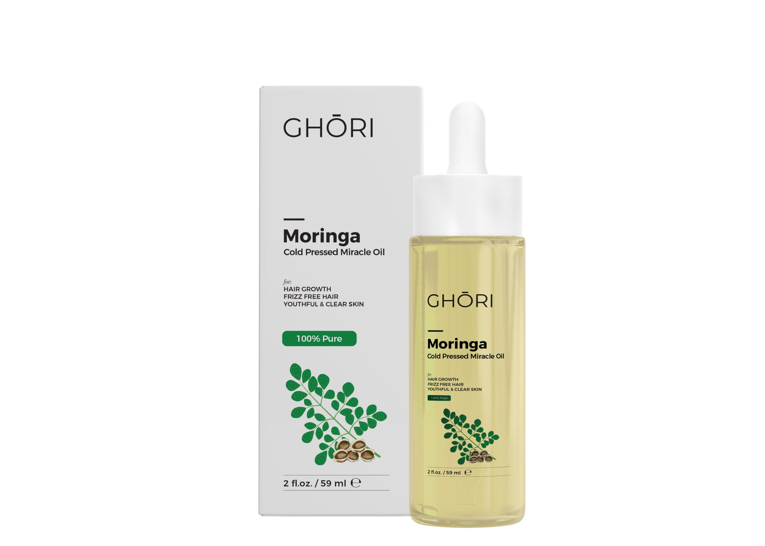 GHORI Moringa Cold-Pressed Miracle Oil | Frizz-Free Hair, Shine & Smoothness | Hair Growth & Scalp Nourishment | Healthy, Clear Skin | 100% Pure, High Oleic & Vitamin E-Rich | 59 Ml